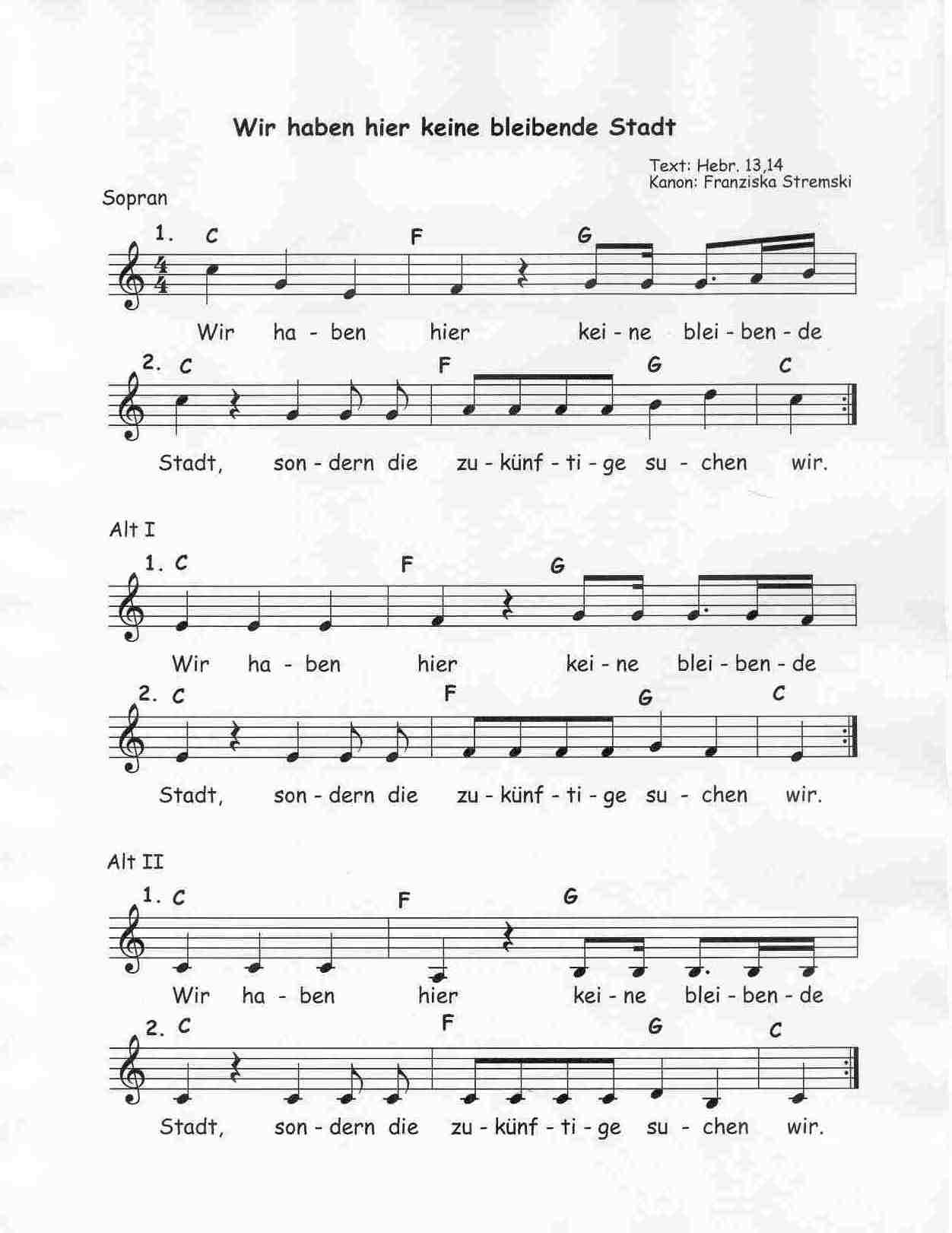 Franziska Stremski bietet schmissige Kanons und Liedrufe an. Die Noten der folgenden Stücke wurden von ihr für die „Liederbörse“ zur Verfügung gestellt: